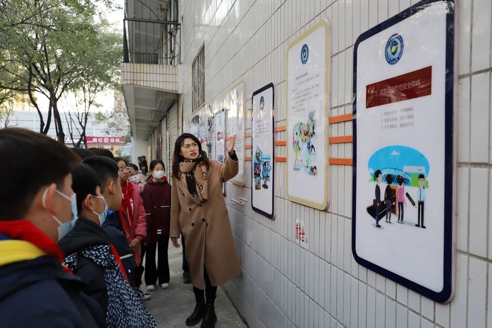 班主任张芊荟老师则把法制教育班会安排在了学校“反恐文化”主题墙处。张老师带领学生一起学习《预防恐怖知识活动基本知识》,详细分析讲解了什么是恐怖主义?常见的恐怖主义表现形式有哪些?如何预防发生恐怖主义及适用法律法规等。通过教学让同学们从小树立自觉抵制恐怖主义意识,做法律上的“明白人儿”。