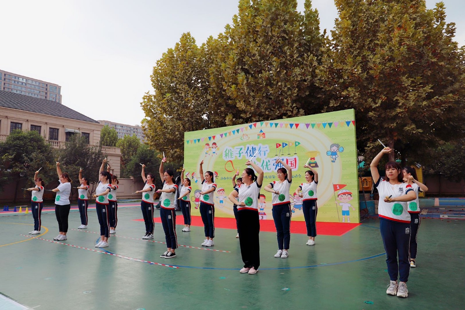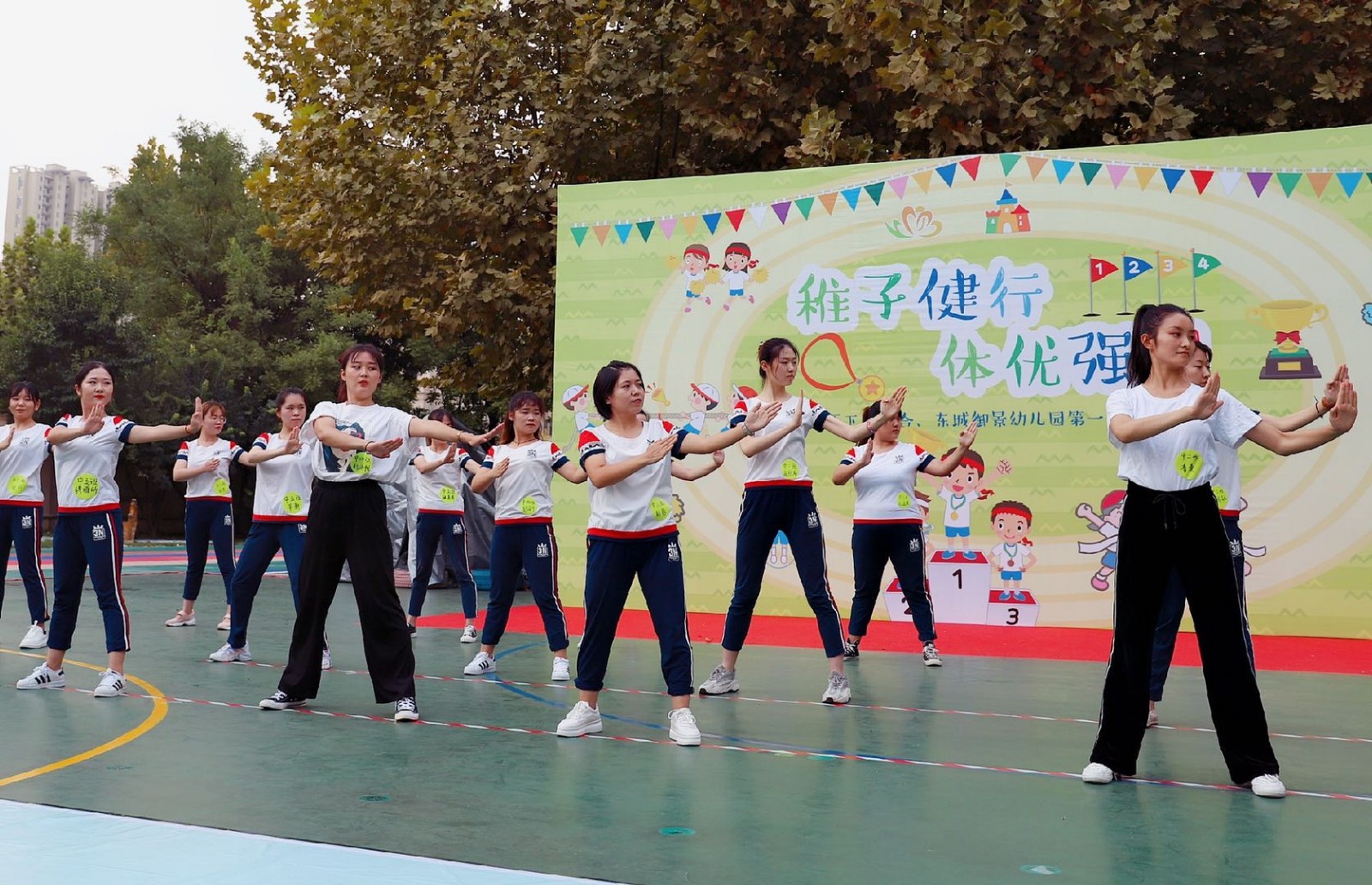 百合、东城御景幼儿园教师们展现了武术操慷概激昂、精神抖擞的精神风貌,增进了集体教师共促发展、携手育人的教师职业操守和共同进步的集体荣誉感。