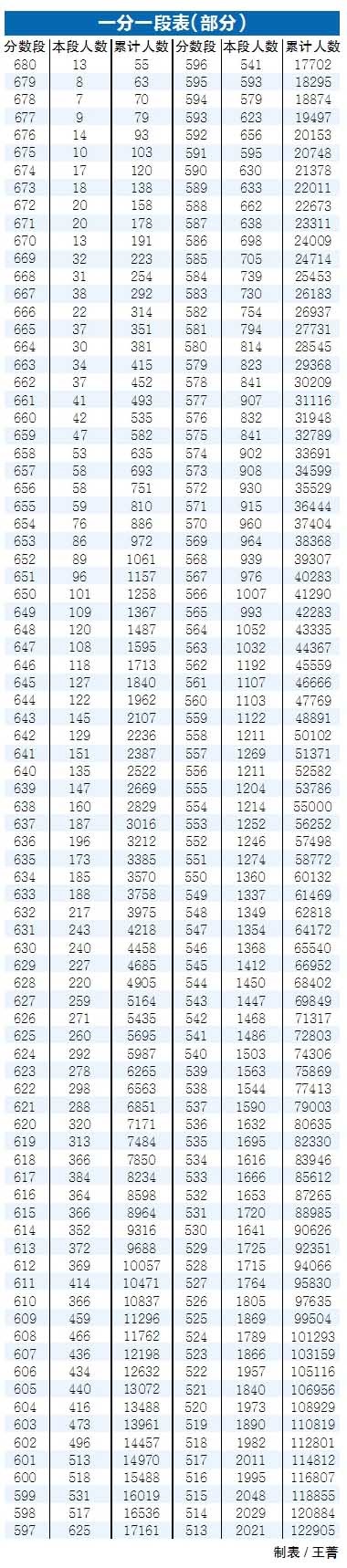 ◎山东商报·速豹新闻网记者 邹元德6月26日,2022年山东夏季高考文化成绩一分一段表发布,从中可以一定程度上了解全省150分以上各分数段考