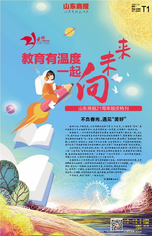 春回大地,万物复苏。山东商报也迎来了第21个生日。21谐音是爱你,我们选择在今天出版教育特刊,也是希望传递一份爱意,与您携手一起向未来