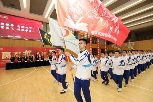 2月28日,济南新航实验外国语学校首届高三学生在老师和家长的陪伴下,举行了高考百日誓师大会。当准考生们挥舞手中的旗帜阔步向前,举起右