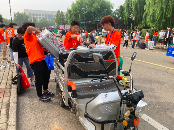 据悉,为统筹做好校园疫情防控工作,学校通过“今日校园”APP下发通知,要求新生上报最近14天的健康信息;严格按照防疫要求提前对宿舍、教室等校内场所进行消杀;学校入口划分多个通道,从入校第一步就做好分流,减少人员聚集。学校还贴心地为每一位新生邮寄了防疫包,包括口罩、一次性手套、免洗洗手液、消毒湿巾等。今年,山东工艺美术学院同样需要新生独立进校报到,家长不能进校,各学院都派出志愿者为新生搬运行李。手推车、平板车、电动三轮车……学生们都提前准备了各式各样的运输工具,让新生得以轻装上阵,办理报到手续。