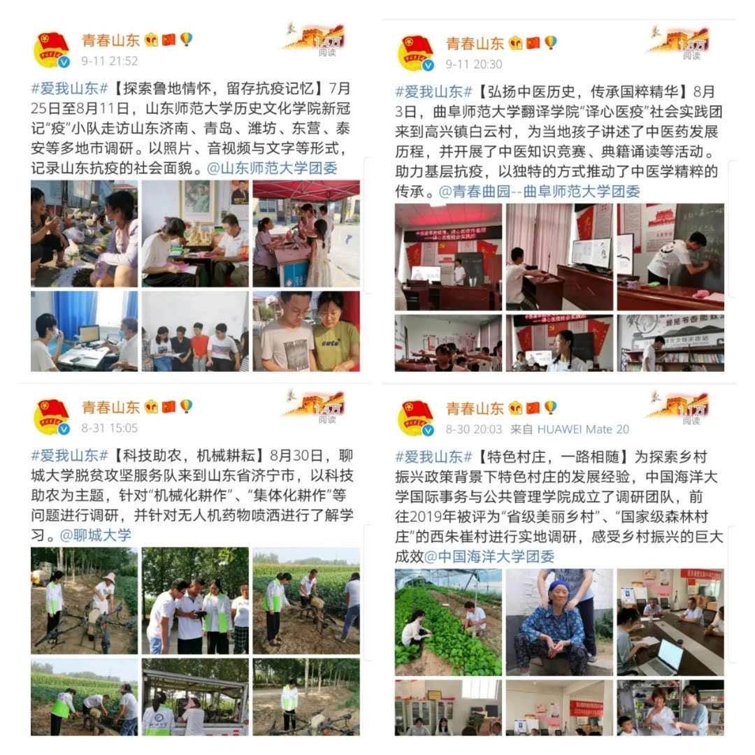 “众人拾柴火焰高”,活动中,媒体、高校、企业、山东籍名人、网红力量齐上阵、同发力,省内大量新媒体公众号自发参与,产生了联动效应。#爱我山东#微博话题,一个月内取得了破亿的阅读量,登上新浪微博热搜要闻榜。广大民众通过文章、图片、视频等形式,po出“我”爱的山东是风景、美食、人物、人文、历史……是每个爱上山东的瞬间。