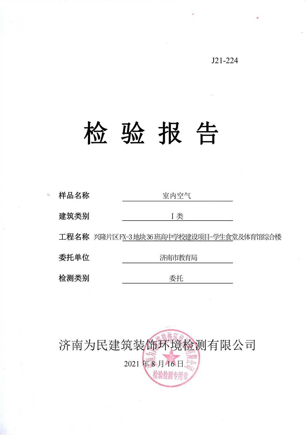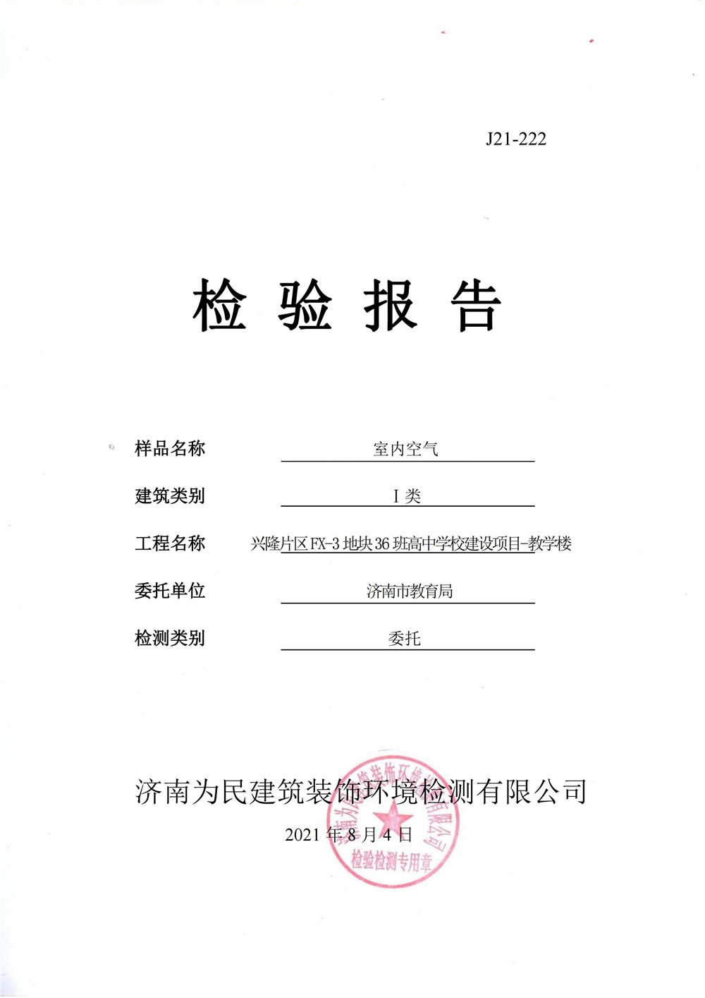 为了所有学生的安全和健康,确保给学生们营造舒适、安全的校园环境,秉持对教育负责任的态度,济南实验高级中学(济钢高中兴隆校区)委托济南为民建筑装饰环境检测有限公司进行了室内空气质量的专项检测。
