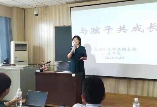 近日,山东省政协常委、民进山东省委员会专职副主委王学爱,受邀来到青岛市城阳区棘洪滩中心小学、青岛市第三十一中(初中),分别为家长和老师们进行了主题为《和孩子一起成长》的家庭教育讲座。