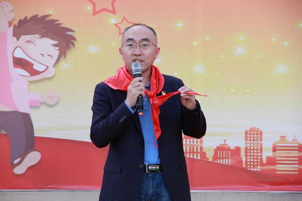 学校党支部书记、校长彭滨为少先队讲述红领巾的来历