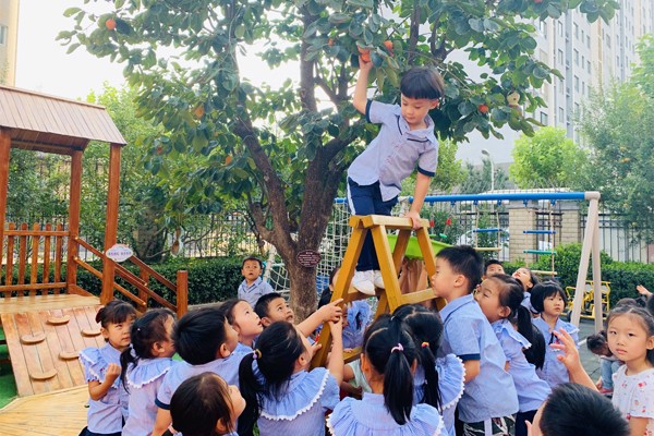 漫步园中你会发现,这里充满着生机勃勃的教育氛围,每一寸土地利用得恰到好处,不仅种植了石榴树、山楂树等九种以上的果树,还在树坑及小面积的地面空间种植了近十种草本植物与常见蔬菜。幼儿园也以“生活”为教育主线,立足实际,围绕着幼儿园环境文化打造出了“秋季丰收”“树叶探索”“冰花探秘”等具有特色的生活化课程。
