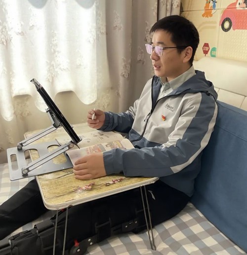 外国语学校高三数学组的老师们承担着全校最为繁重的线上授课任务,每周课时量高达14节之多,尽管如此,老师们依旧每天到校上课,集体教研,集思广益,解决线上教学的各种问题,分析思路、想对策。由于线上教学的设备紧张,张兴城老师自费购入线上教学白板和电子写字笔;闫旭老师身兼班主任工作,他每天从早上六点的早读到晚上十点的晚自习,全天候全时段跟进教学。老师们每天上午上课,下午批作业,晚上备课,全天候实时答疑,辛勤的付出也得到了学生们的一致肯定,学生们都说,数学线上授课质量非常高,在家上网课的效果和线下上课完全一样。