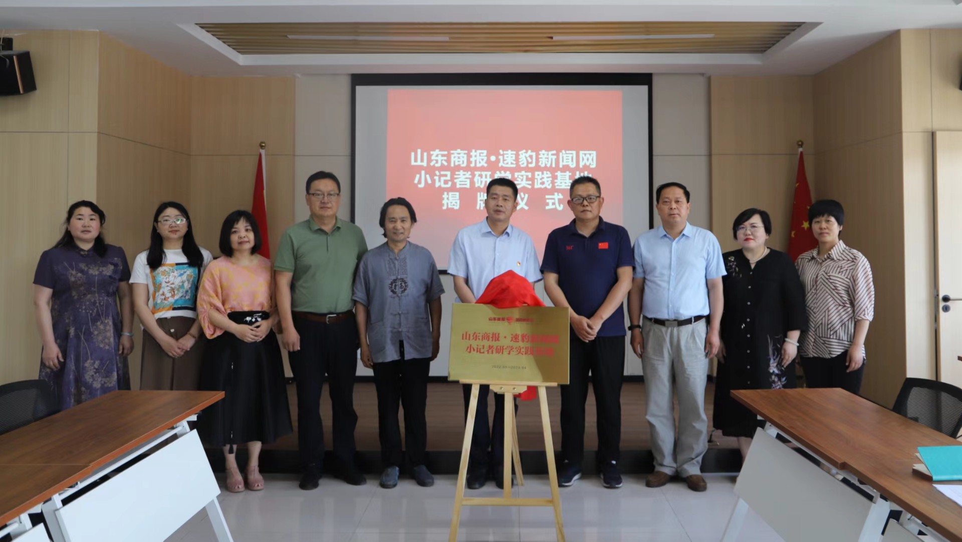 5月27日下午,济南市历城区彩石街道的一间会议室里,气氛热烈浓厚。来自济南工程职业技术学院、山东商报·速豹新闻网和彩石街道三方的领导和工作人员、与非遗烙画传承人孙丽敏老师一起,共同见证“山东商报·速豹新闻网小记者研学实践基地”的揭牌设立。这是本报设立的第三个小记者研学实践基地。