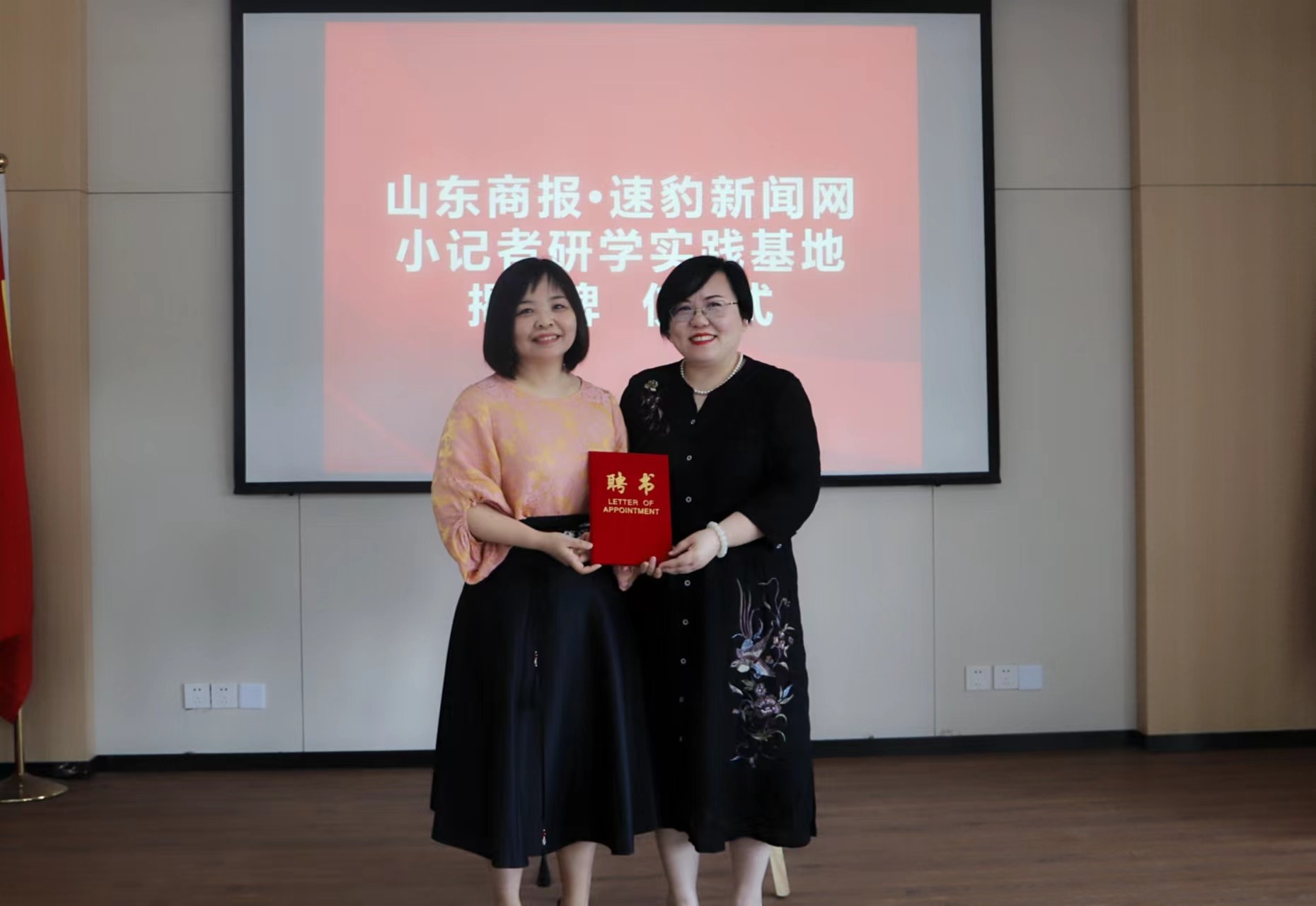 5月27日下午,山东商报副总编辑、速豹新闻网执行总编王富和彩石街道党工委书记张勇,共同为小记者研学实践基地揭牌,山东商报编委,速豹新闻网副总编辑杨芳为孙丽敏颁发了山东商报小记者研学实践和非遗传承指导专家聘书。