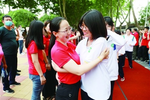 从线上回归线下,加之离高考还有一个月,学生的心理状态波动较大。老师们除了要保证教学,更要时刻关注学生的情绪变化。每天早上6:30,班主任们会准时进班,陪学生早读,一直到晚上10:30,大家还都在学生宿舍巡视,几乎每天都是16个小时的工作状态。学生发展部(高三)副主任高飞的妻子也是高中老师,儿子年龄小,跟着妈妈一起封闭在学校里。但儿子平时很喜欢和爸爸玩,白天又怕打扰爸爸工作,只有晚上睡觉前给爸爸打电话,当儿子说“想爸爸”时,高飞的眼泪夺眶而出。