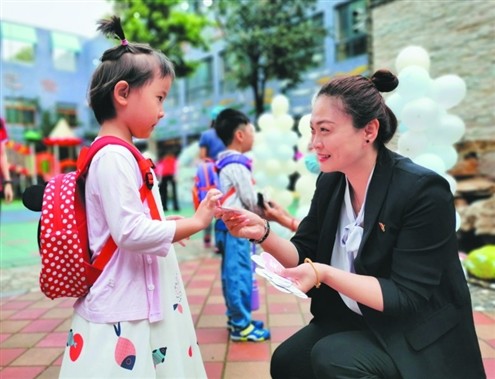 多年来,虽然潘珂的身份在变,但她“用心浇灌每一朵花”的初心始终不改。园里先天失聪孩子晓晓(化名)虽然安装了人工耳蜗装置,但和老师小朋友之间都不能顺畅交流,参与集体活动有障碍。面对这个特殊的孩子,班里的老师有些无所适从,不知该怎样实施合适的教育和班级管理。为了给晓晓提供适宜的教育环境,潘珂业余时间带着老师多次走访晓晓一家,深入了解孩子的情况。她主动联系省残联的专家,了解学习听力障碍幼儿康复训练方法,并请专家到园诊断,为老师们提供专业的教养指导方案。日复一日的坚持,晓晓悄然发生着改变:交流中逐渐有了眼神对视、学会了多个词汇的组合应用,表现出了对老师的依恋和对幼儿园的喜爱……在潘珂看来,“每一个孩子都是一粒种子,只是花期不同,需要我们耐心浇灌,静待花开。”