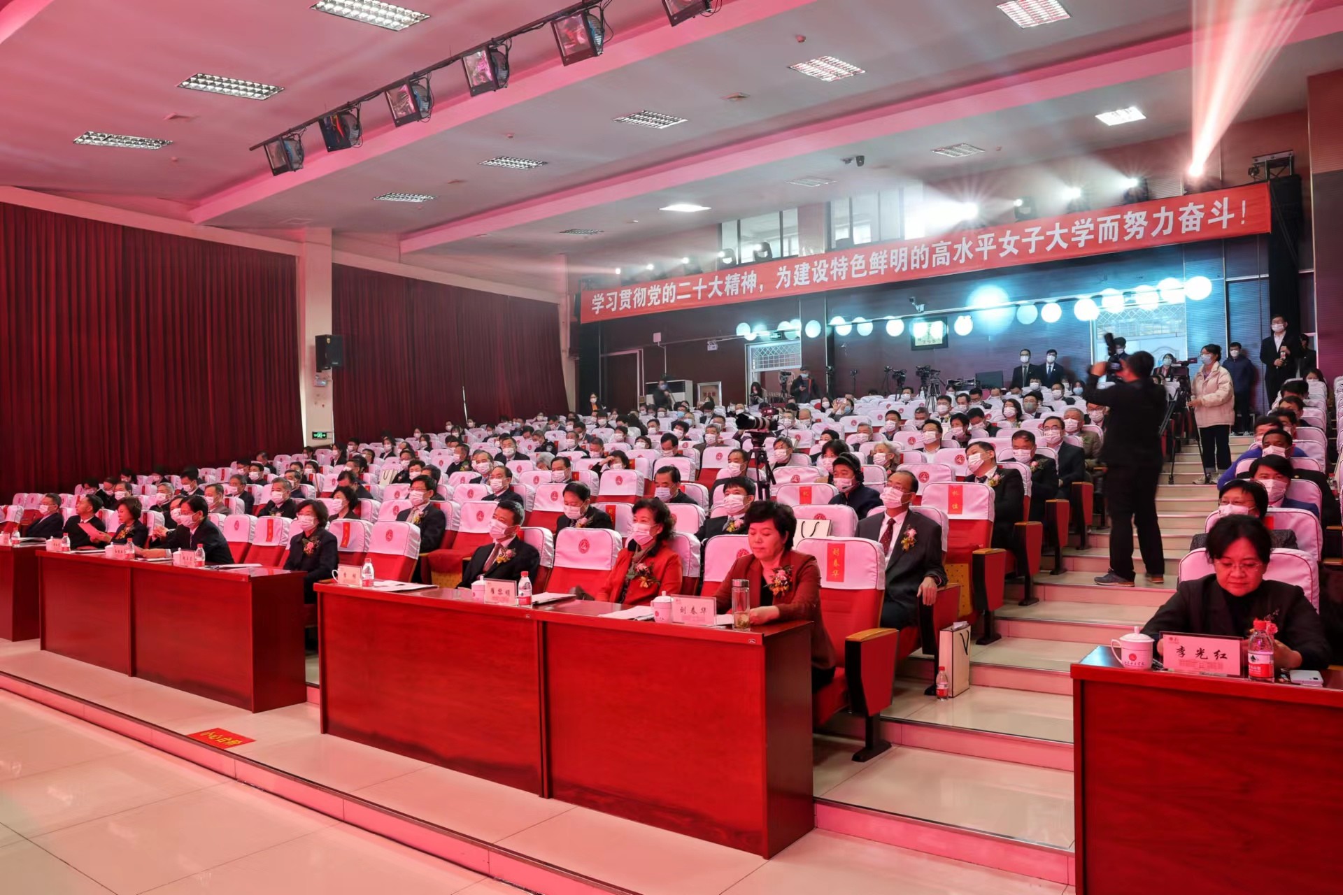 郭翠芬在主持大会时指出,七十周年校庆恰逢全国上下深入学习宣传贯彻党的二十大精神、奋力夺取全面建设社会主义现代化国家新胜利的关键时刻,恰逢山东“走在前、开新局”、全力建设新时代社会主义现代化强省的关键节点。庆祝大会既是对山东女子学院七十年办学治校历程的总结与回顾,更是立足新起点、迈向新征程的开端。在新的征程上,山东女子学院将始终以习近平新时代中国特色社会主义思想为指导,坚持党的全面领导,坚守为党育人、为国育才初心使命,落实立德树人根本任务,以高质量发展为主题,胸怀“国之大者”,更好地服务国家战略,服务山东强省建设,培养更多的德智体美劳全面发展的社会主义建设者和接班人,奋力谱写教育事业高质量发展的新篇章。