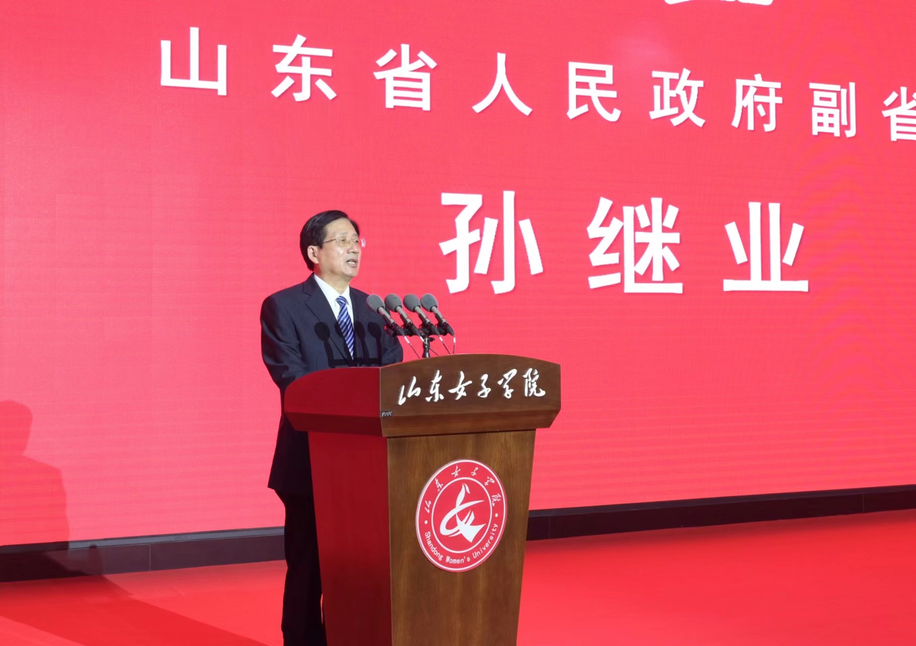 孙继业代表省政府向山东女子学院表示热烈祝贺。他说,山东女子学院伴随新中国前进的步伐而诞生,伴随改革开放的进程而发展。七十年来,一代代女院人秉承“坤德含弘、至善尚美”的校训,勤奋耕耘,弦歌不辍,奋力推动学校向应用型地方特色名校的目标迈进。特别是近年来,学校认真贯彻落实党的教育方针,坚持社会主义办学方向,紧紧围绕立德树人根本任务,锚定“走在前、开新局”,在人才培养、科学研究、社会服务、文化传承等方面深化改革、锐意进取,育人成效显著,办学成果丰硕,为经济强省发展作出了重要贡献。希望学校立足建校七十周年新起点,坚持以习近平新时代中国特色社会主义思想为指导,把深入学习贯彻党的二十大精神作为当前和今后一个时期的首要政治任务,全面贯彻落实党的教育方针,突出女性人才培养特色,持续强化学科建设,坚定不移走内涵式高质量发展道路,加快提升人才培养质量和办学水平,早日建成特色鲜明的高水平应用型大学。希望女院学子牢记习近平总书记“怀抱梦想又脚踏实地,敢想敢为又善作善成”的谆谆教诲,坚定不移听党话、跟党走,努力在新时代的青春赛道上跑出无愧于时代、无愧于人民、无愧于历史的好成绩。