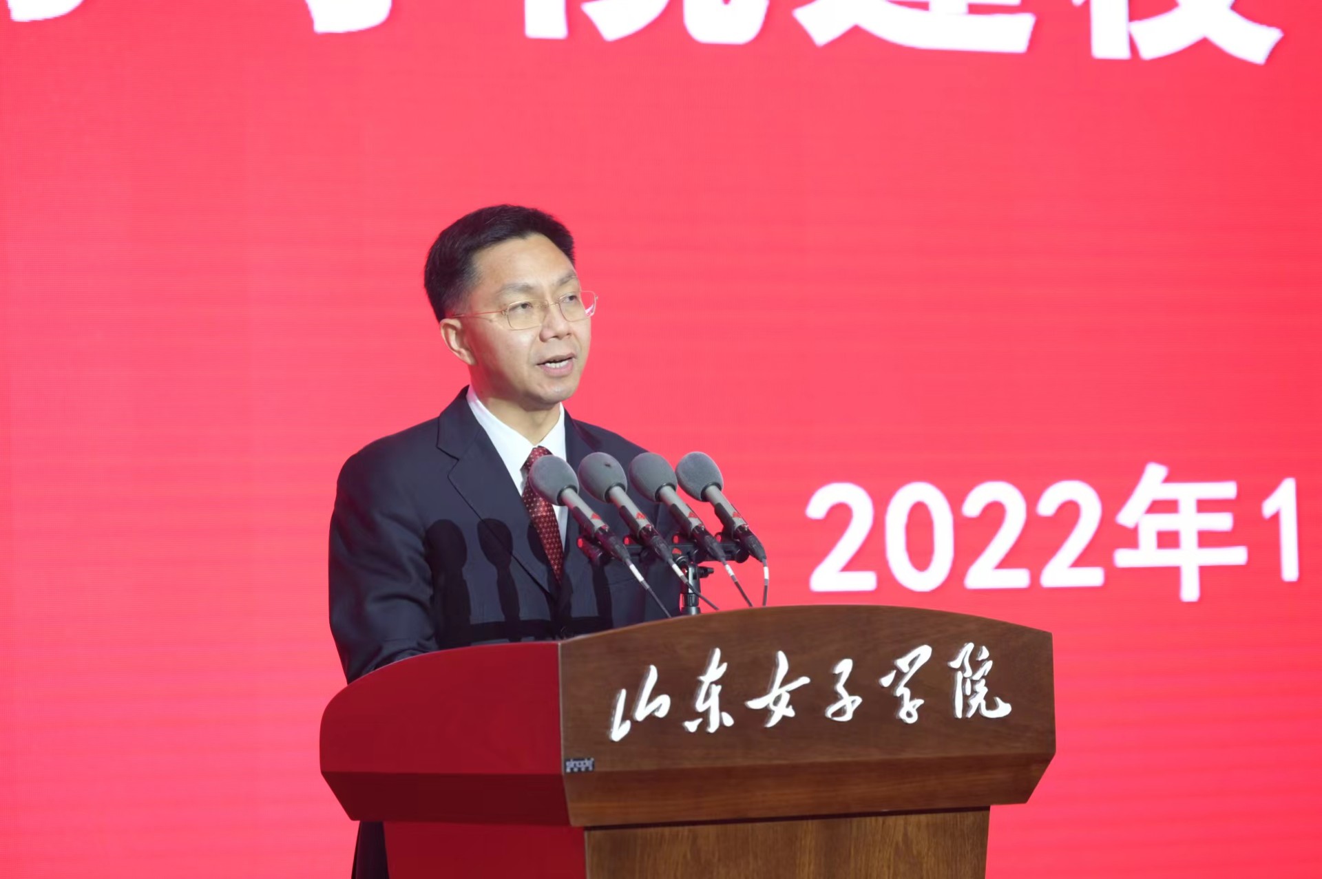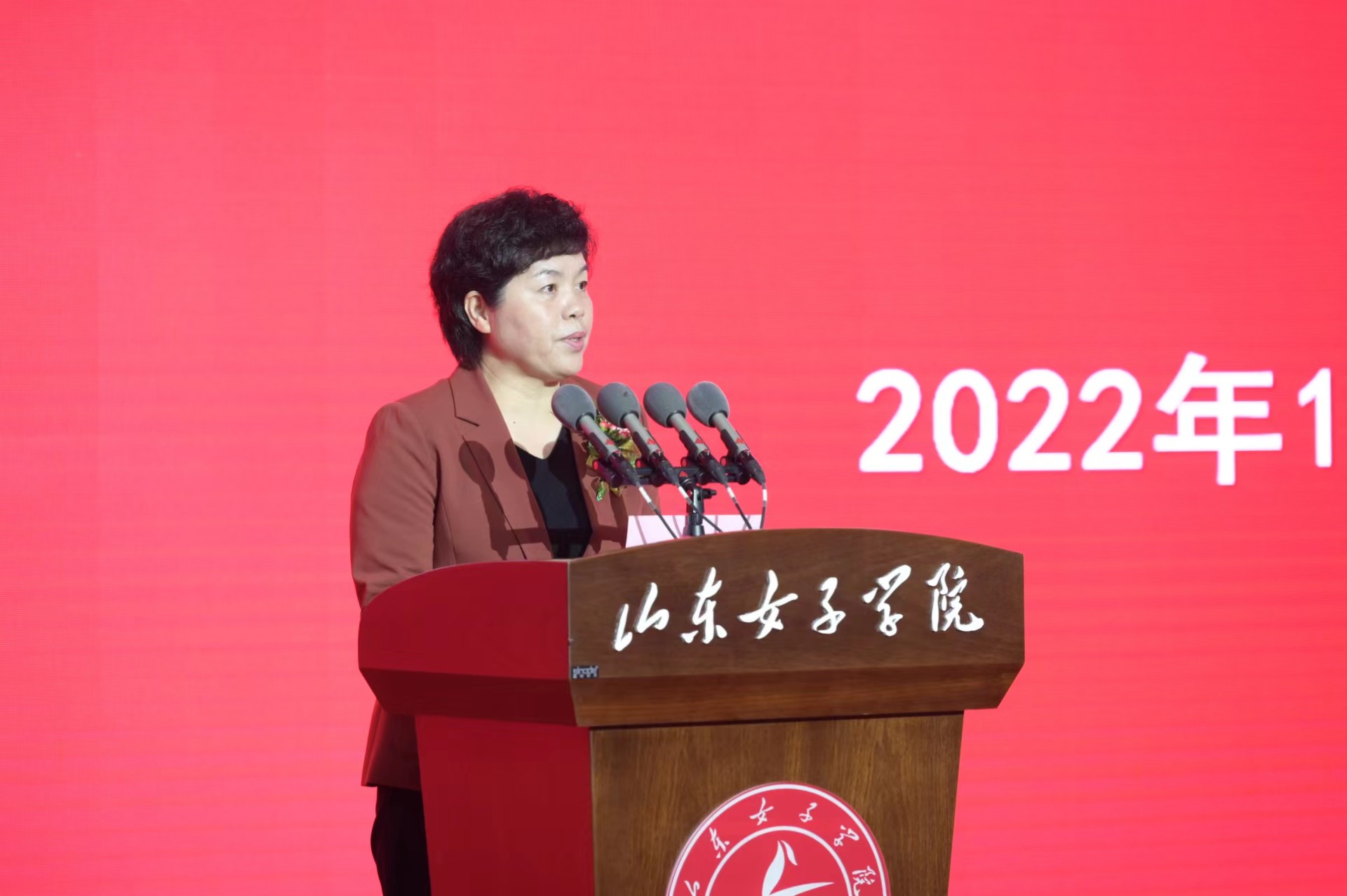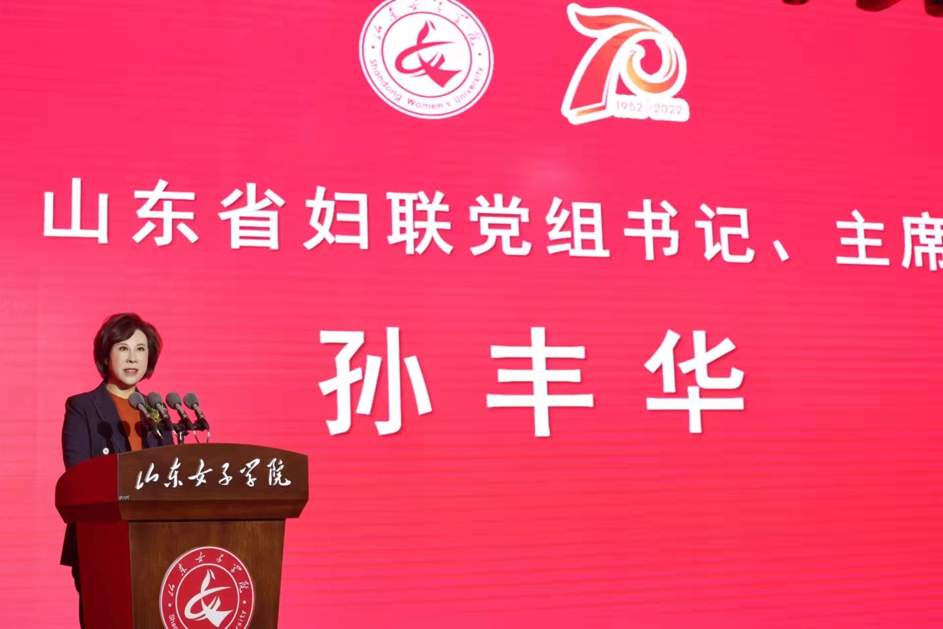 孙丰华在致辞时表示,山东女子学院起源于山东省妇联创办的山东省妇女干部学校。学校坚持女性教育特色,突出女性人才培养、科学研究和社会服务等办学特色,形成了独特的办学优势。希望学校全面贯彻落实习近平总书记关于妇女和妇女工作的重要论述,在培养造就担当民族复兴大任的时代新人上奋勇争先,努力建设特色鲜明的高水平女子大学,以高质量办学成果促进妇女的全面发展;充分发挥在妇女理论和妇女工作研究方面的突出优势,在发挥智库作用上奋勇争先,为促进男女平等基本国策落地落实,促进妇女与经济社会同步协调发展献计出力。希望同学们牢记习近平总书记嘱托,立志做有理想、敢担当、能吃苦、肯奋斗的时代好青年,在全面建设社会主义现代化国家的火热实践中书写出彩人生。