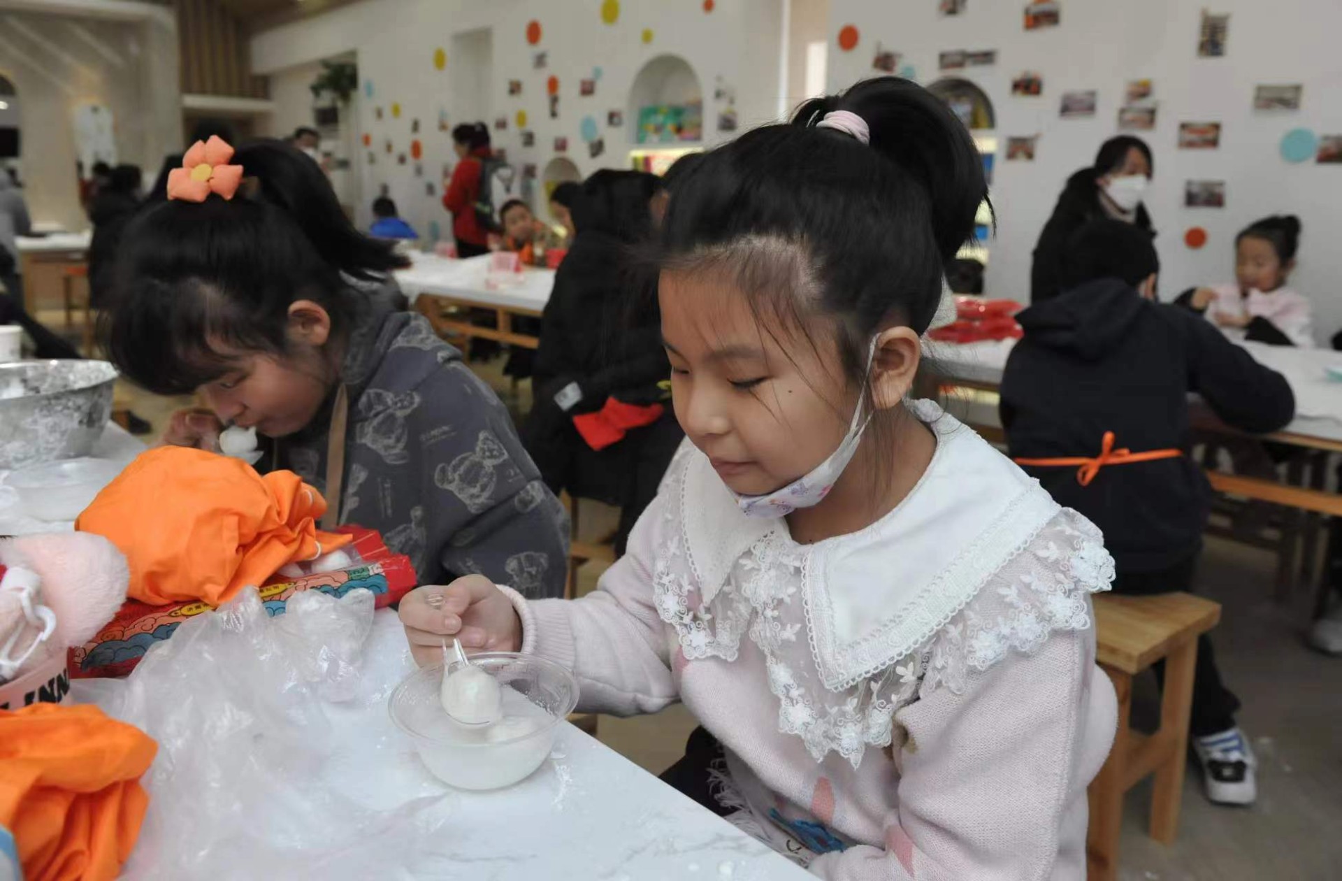 在了解了相关制作要领后,不少学生已经迫不及待想要亲自体验一番,当拿到原材料,大家便开始了“摇元宵行动”。看似简单的步骤,做起来却没有想象中那么容易,在徐传爱的指导下和家长们的帮助下,几番“轮番上阵”后,孩子们终于摇出了自己的元宵。四年级的徐梓航和段宛昀表示,自己是第一次体验摇元宵,感觉特别好玩,“虽然是个体力活,但一点也不累。回去以后,我们还会把今天的活动写到日记里。”有家长则表示,虽然孩子们摇出来的元宵并没有那么完美,但都很“卖力”,也切身体会到了传统技艺所具有的工匠精神,感受到了传统节日所带来的良好氛围。