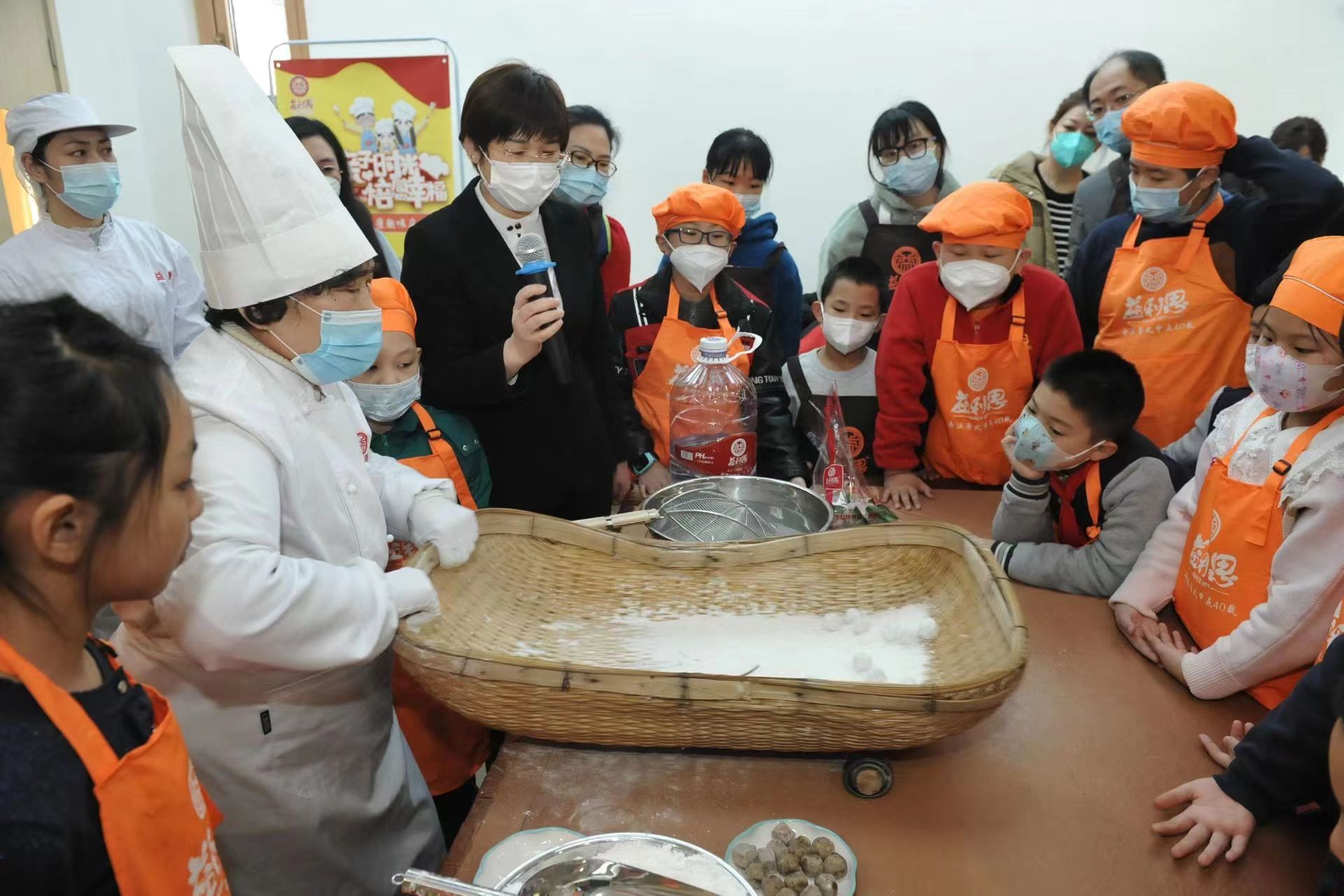 元宵节的由来是什么?元宵与汤圆的区别是什么?元宵又是如何制作的?本次活动特意邀请到了济南市非物质文化遗产保护协会副会长兼秘书长张继平和山东省非物质文化遗产葡萄软月技艺第五代传承人徐传爱,与孩子们进行现场交流,指导大家亲手制作自己的元宵。“汤圆是‘包’出来的,而元宵是‘滚’出来的。南方以吃汤圆为主,北方则是吃元宵居多,但无论是汤圆还是元宵,都是我国的传统文化。”正式开始制作前,徐传爱为孩子们解答了元宵与汤圆的区别等相关知识,她还提到,在口感上,元宵更加劲道、有嚼劲,而汤圆吃起来更软更滑。