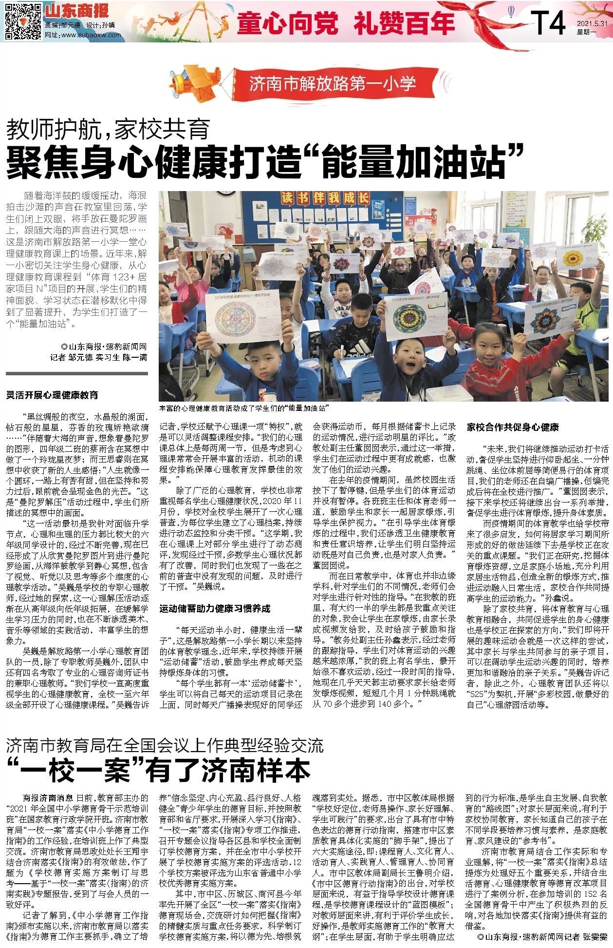 近年来,解一小密切关注学生身心健康,从心理健康教育课程到“体育123+居家项目N”项目的开展,学生们的精神面貌、学习状态在潜移默化中得到了显著提升,为学生们打造了一个“能量加油站”。