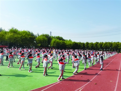 近日,济南燕山学校在各年级开展了体育大课间创编操活动。