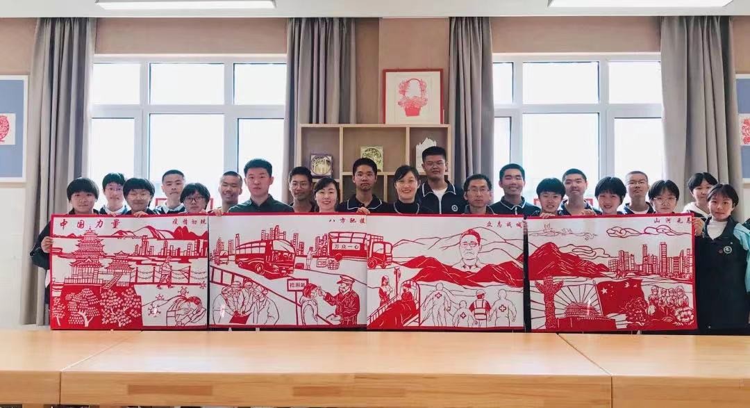 近日,为传承民族优秀传统文化,弘扬抗疫精神,历城二中美术组教师带领同学们完成了剪纸作品《中国力量》。